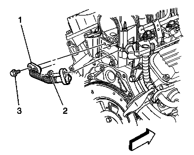2. Remove the exhaust gas recirculation (EGR) outlet pipe bolt (3) from the intake manifold.