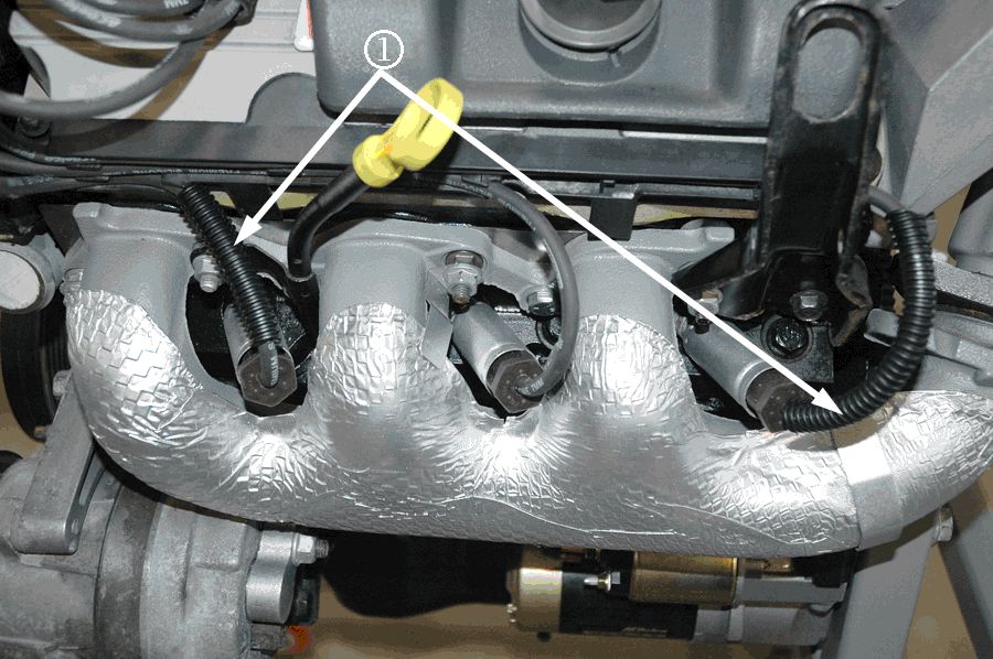 4. If present, remove any plastic (polypropylene) conduit (1) from the spark plug wires at the front of the engine (should only be found on spark plug wires 1 and 5).