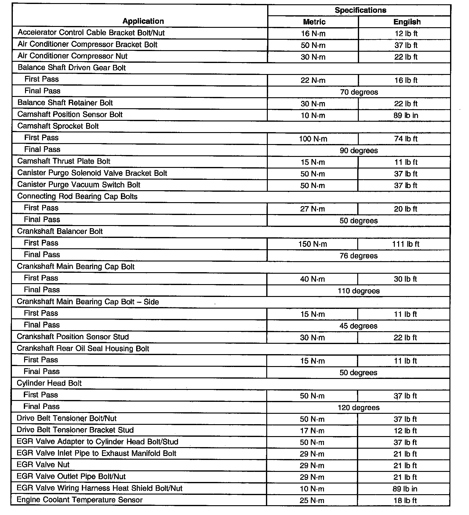 Fastener Tightening Specifications