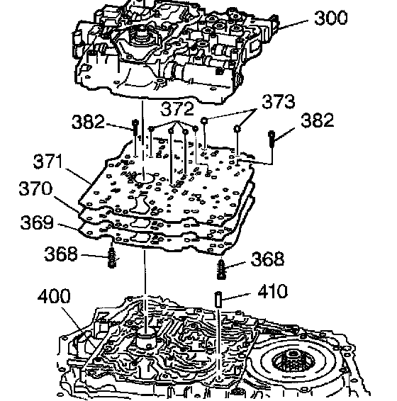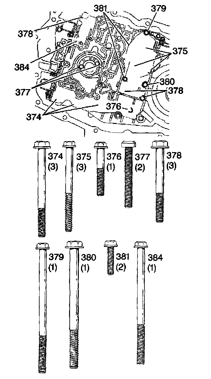 3. Remove the valve body bolts (374-381, 384).