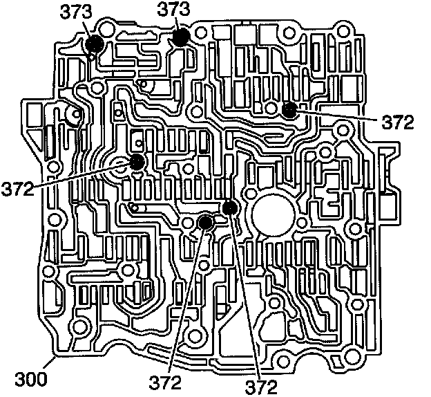 3. Install the ball check valves (372 and 373) into the valve body. Use the J 36850 to retain the ball check valves in their proper locations.