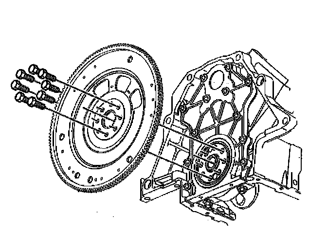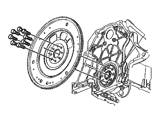5. Firmly grasp the engine flywheel and remove the remaining bolt. Do not drop the engine flywheel when removing the final bolt.