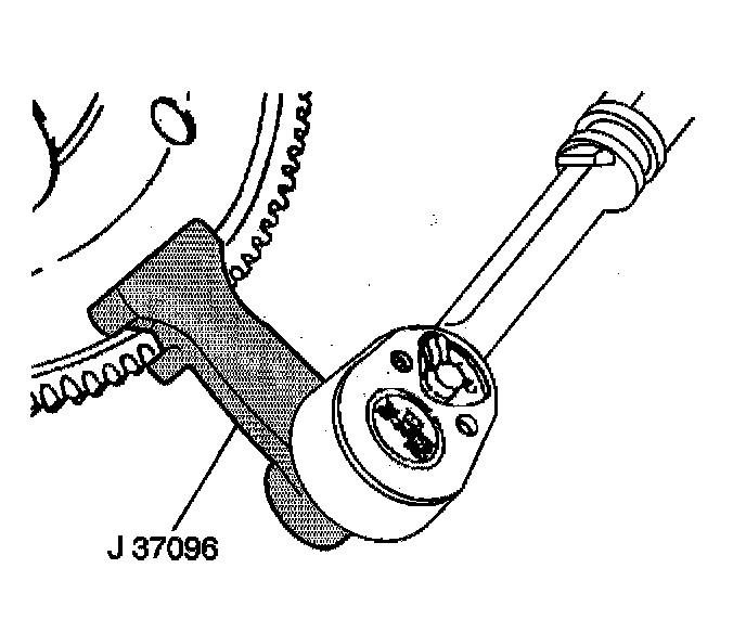 2. Use the J 37096 to secure the flywheel in order to prevent the crankshaft from rotating.