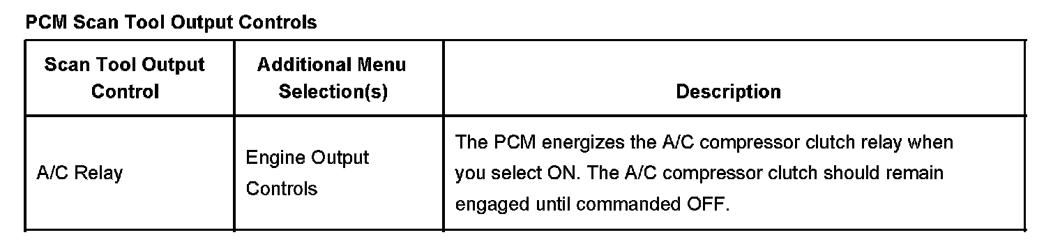 Scan Tool Output Controls - Powertrain Control Module (PCM)