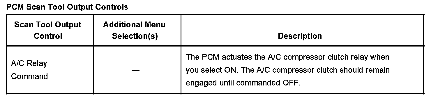 Scan Tool Output Controls - Powertrain Control Module (PCM)