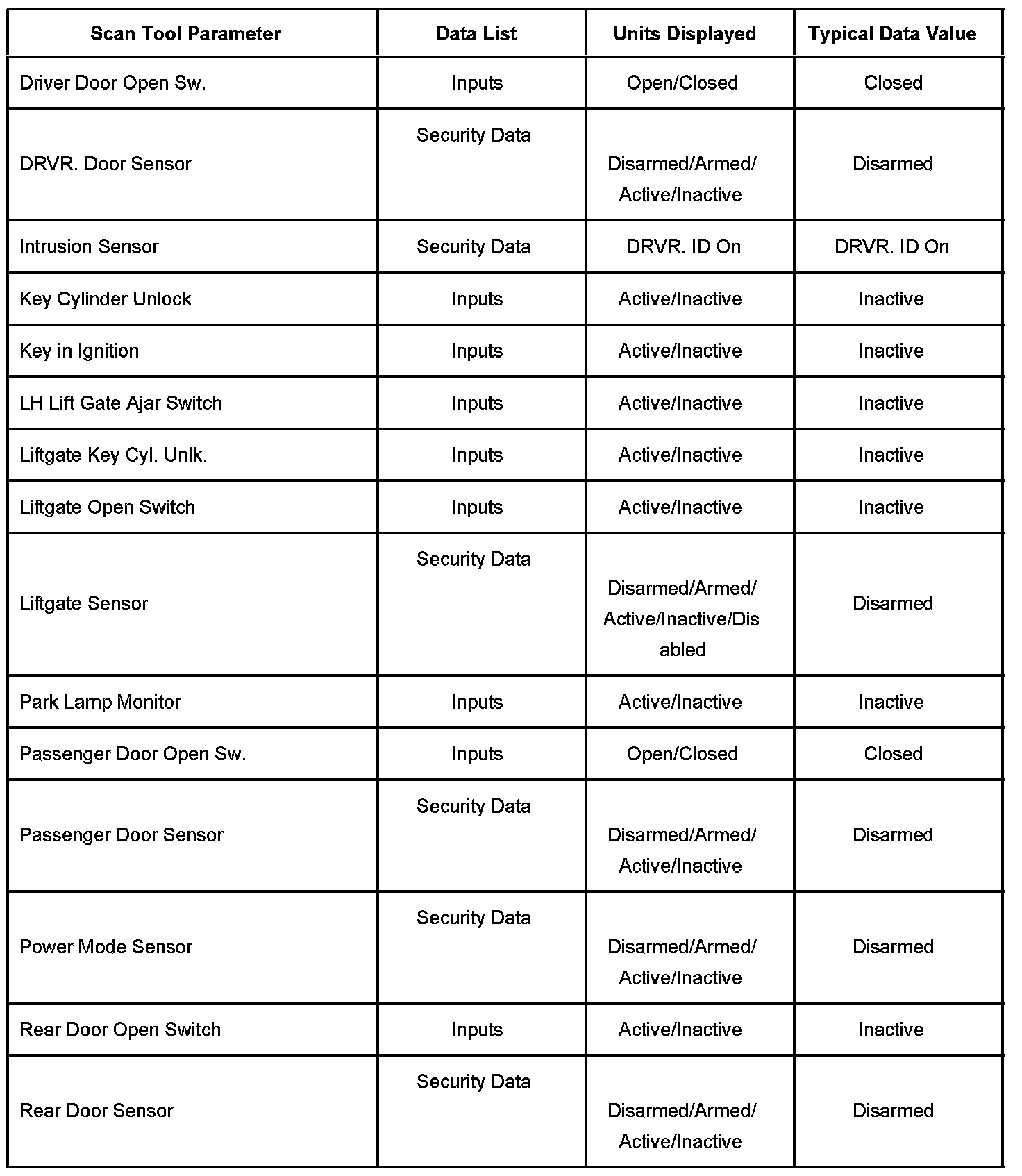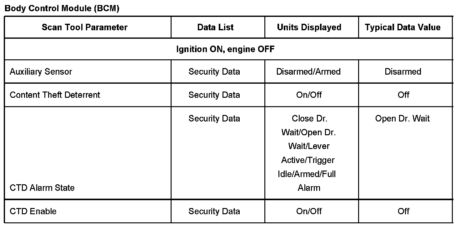 Body Control Module (BCM) Scan Tool Data List Part 1: