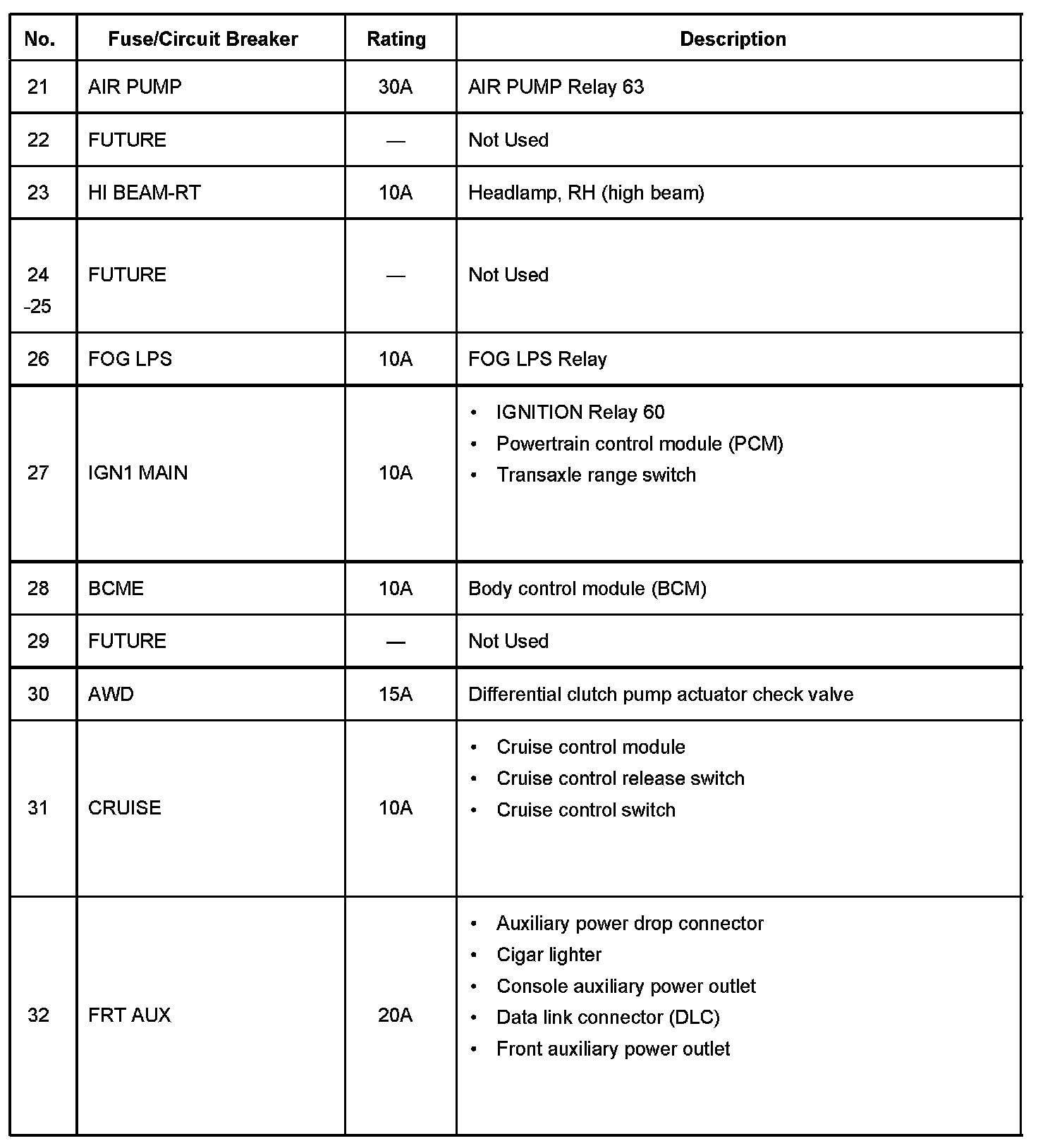 Underhood Fuse/Relay BlockEngine Comartment - LF: