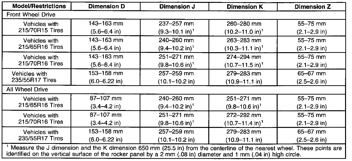 Ride/Trim Height Specifications