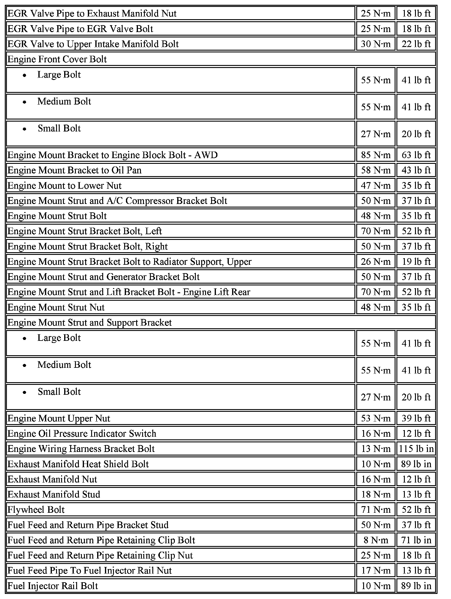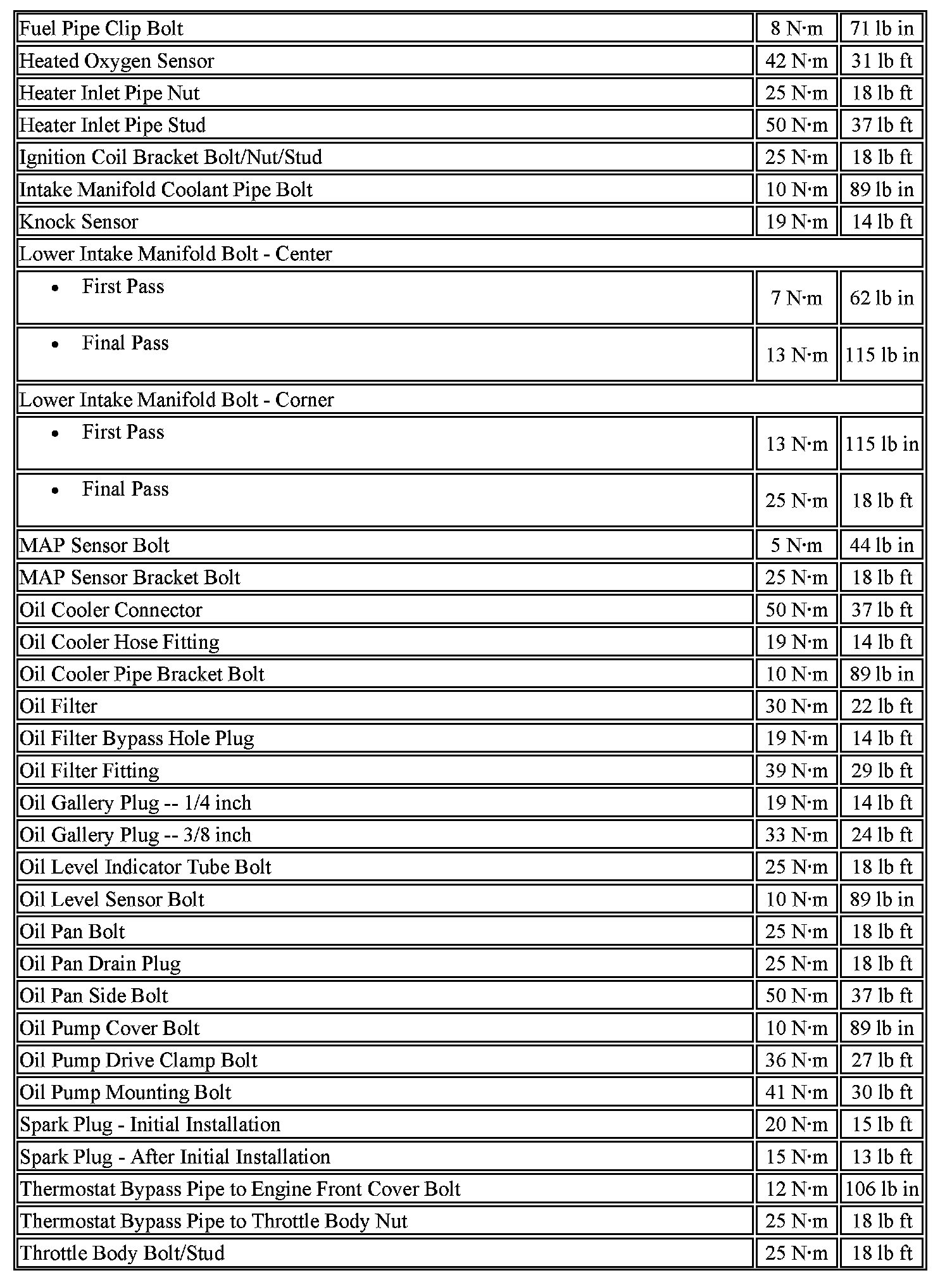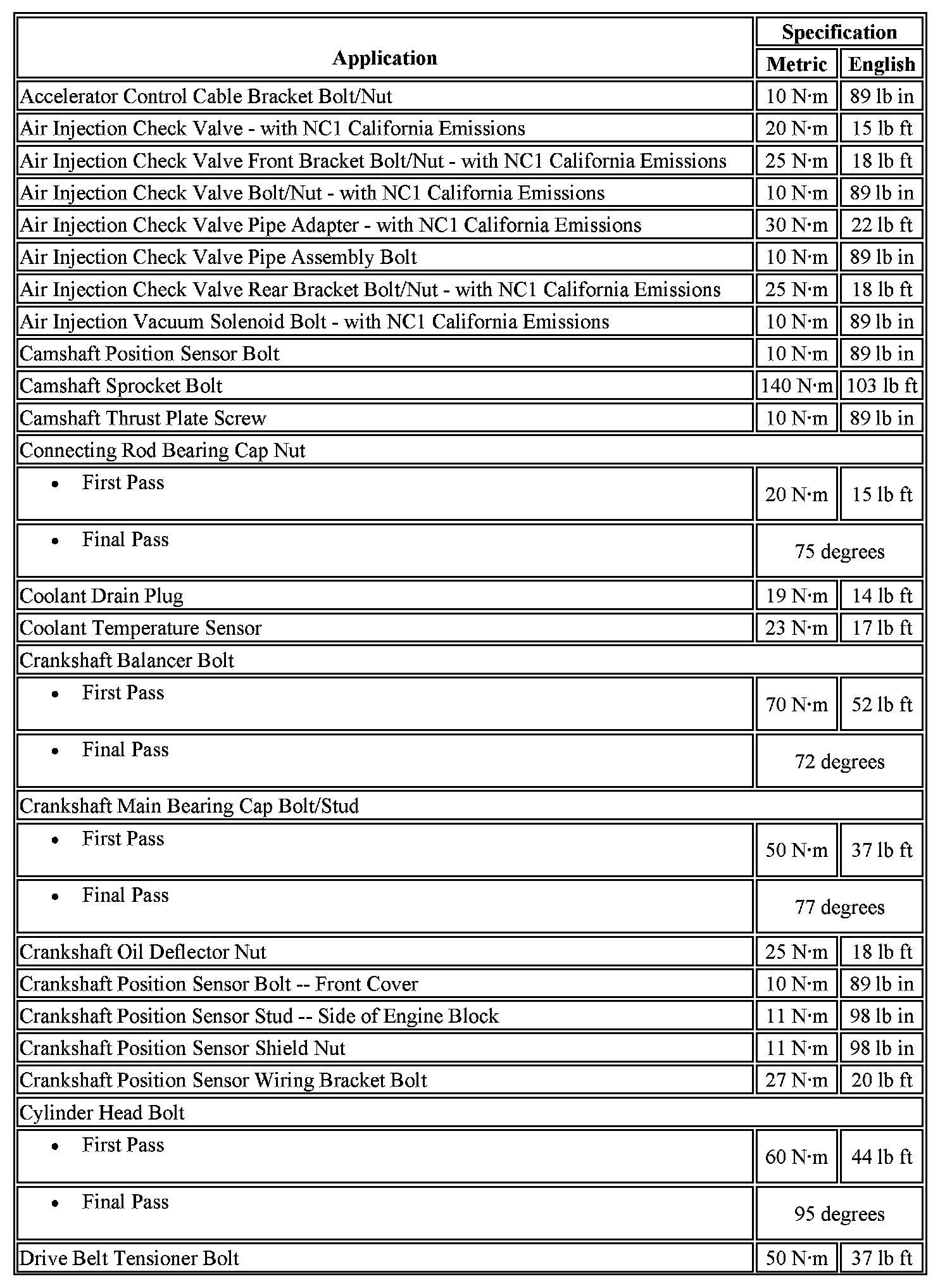 Engine Fastener Tightening Specifications