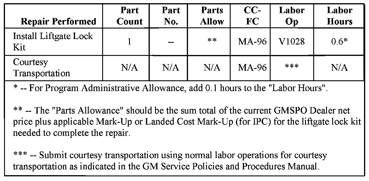 Additional parts, if required, are to be obtained from General Motors Service Parts Operations (GMSPO). Please refer to your "involved vehicles listing" before ordering parts. Normal orders should be placed on a DRO = Daily Replenishment Order. In an emergency situation, parts should be ordered on a CSO = Customer Special Order.
