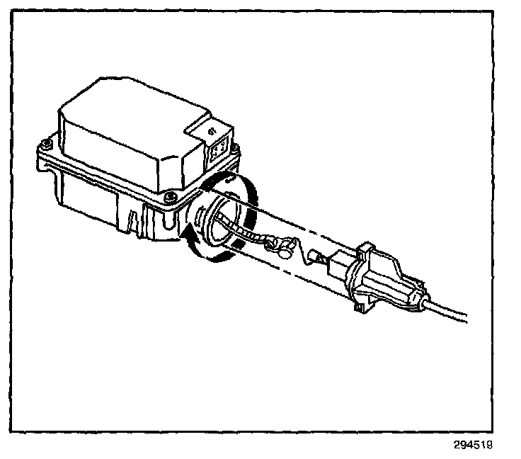 2. Rotate the cruise control cable counterclockwise. Remove the cruise control cable from the cruise control module.