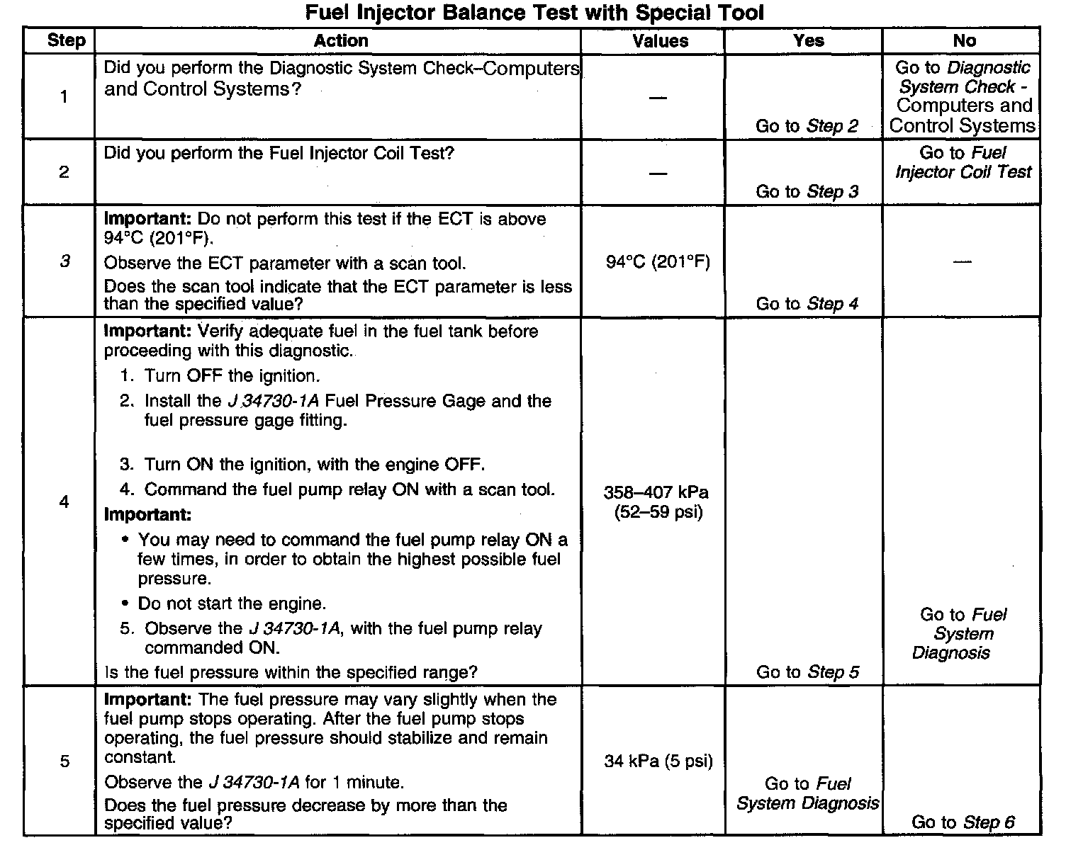 Fuel Injector Balance Test Example (Typical):