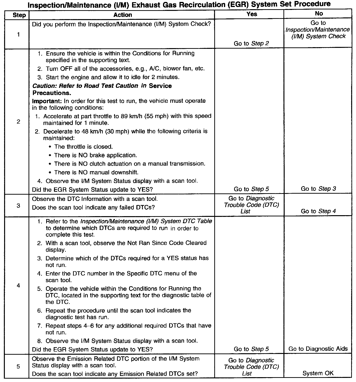 INSPECTION/MAINTENANCE (I/M) EXHAUST GAS RECIRCULATION (EGR) SYSTEM SET PROCEDUREDESCRIPTION