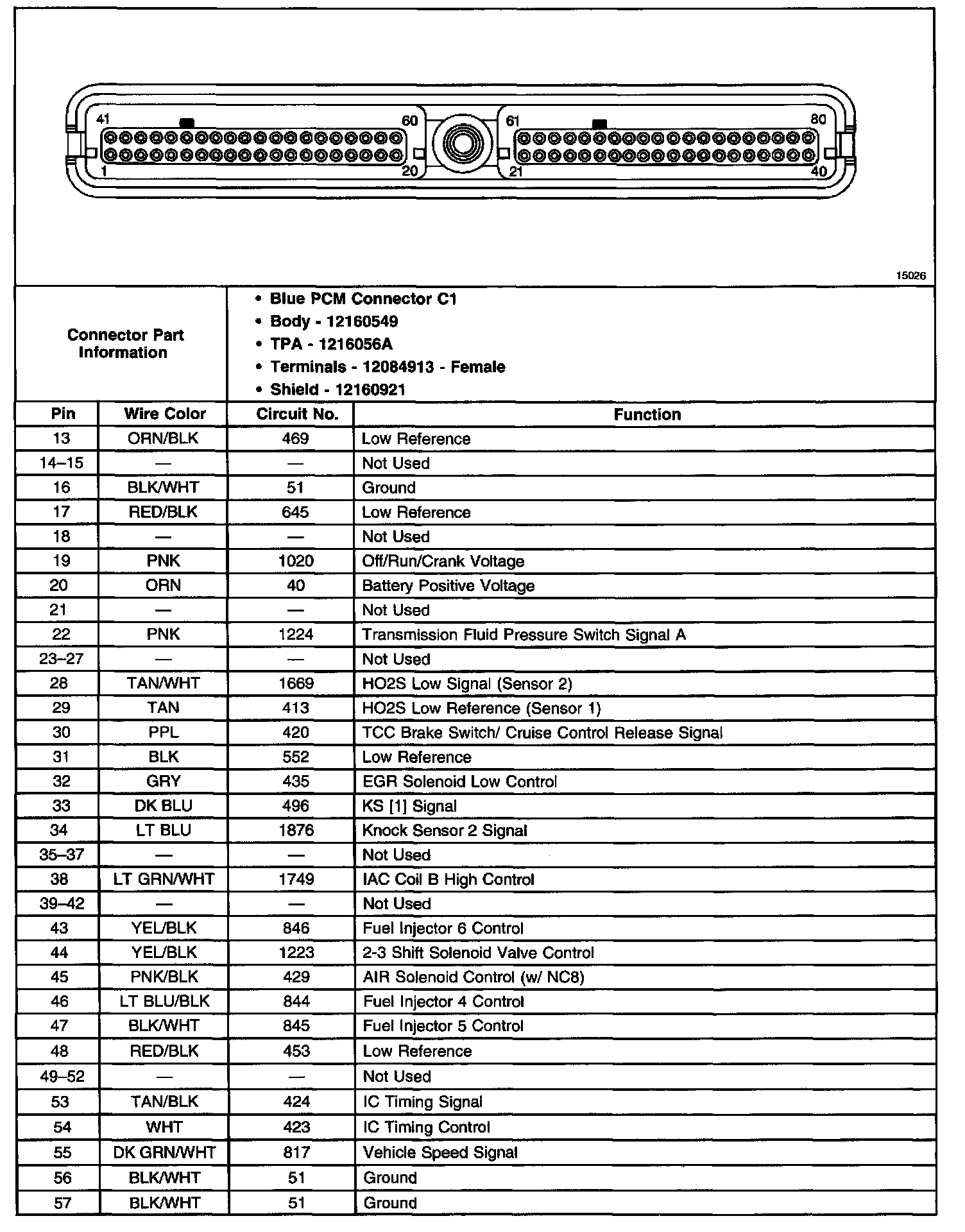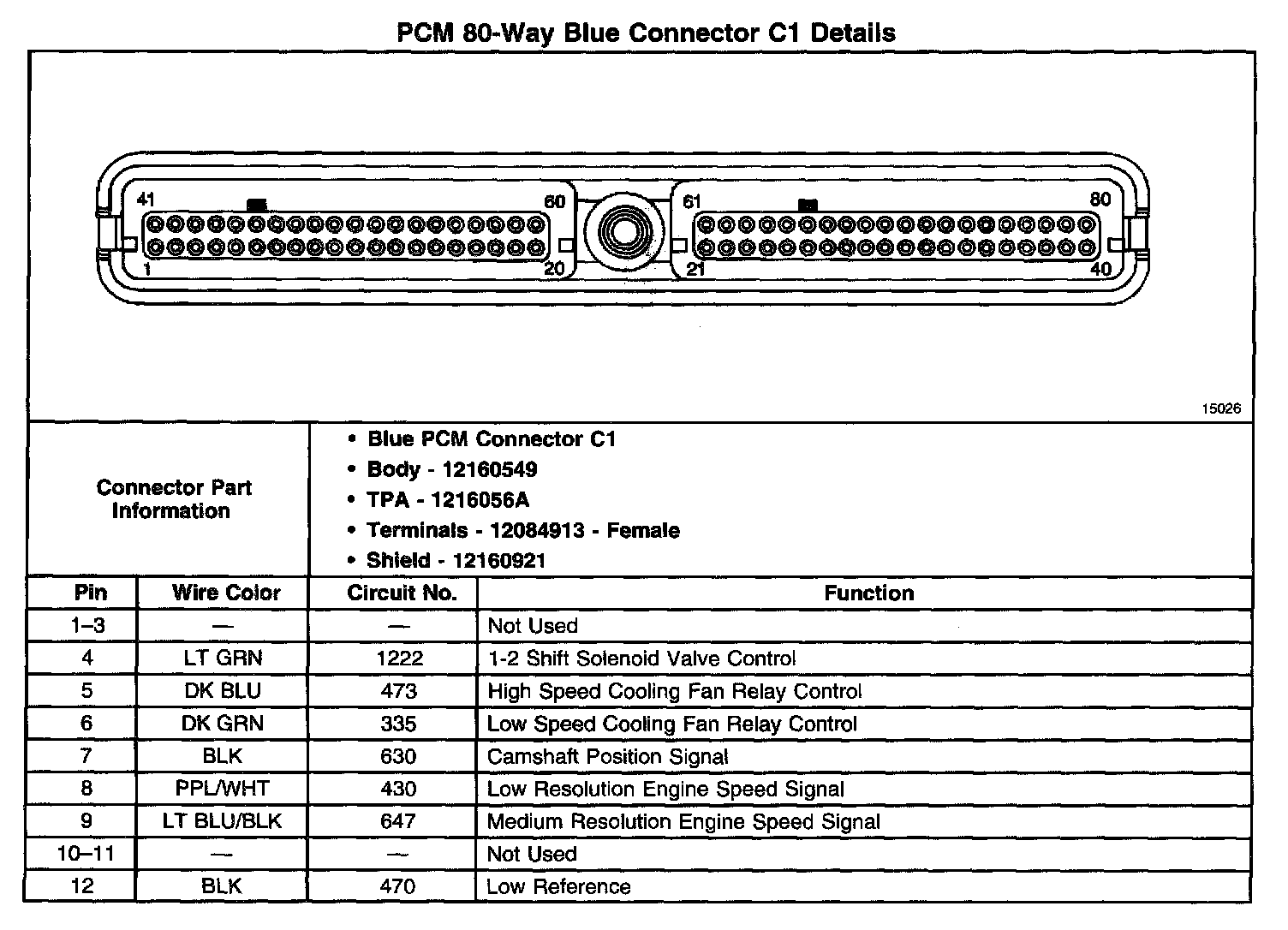 PCM 80-Way Blue Connector C1 Details
