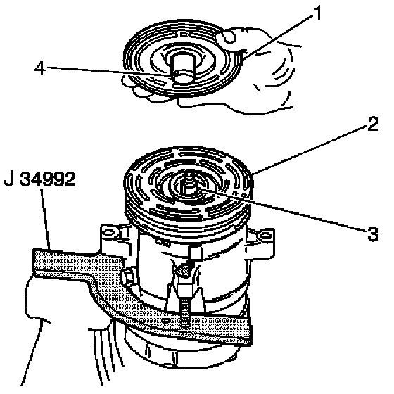 1. Install the compressor into the J 34992.