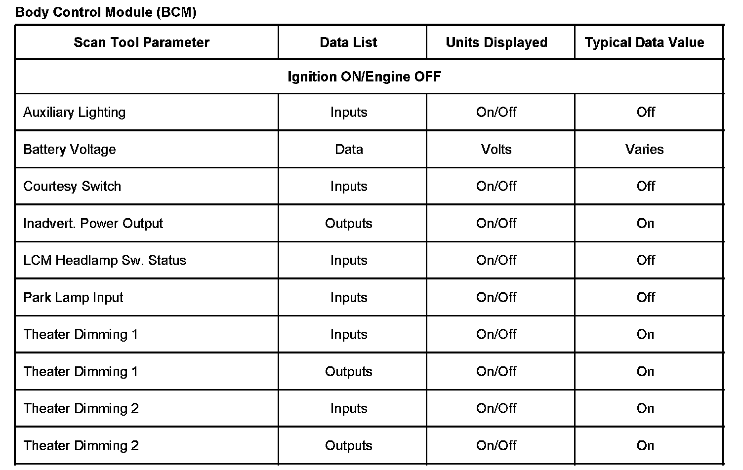 Body Control Module (BCM):