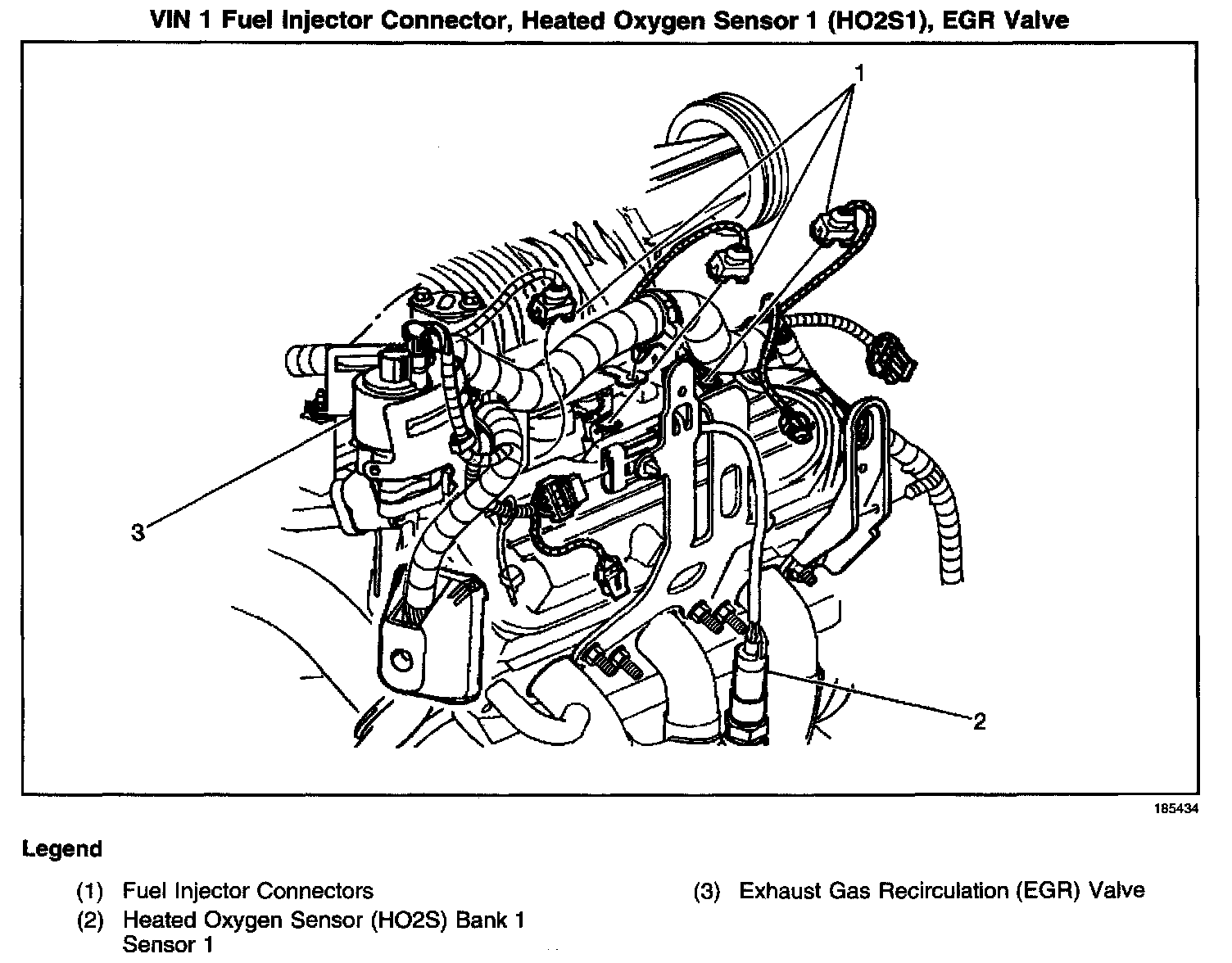 Fuel Injector Connector, Heated Oxygen Sensor 1 (HO2S1), EGR Valve: