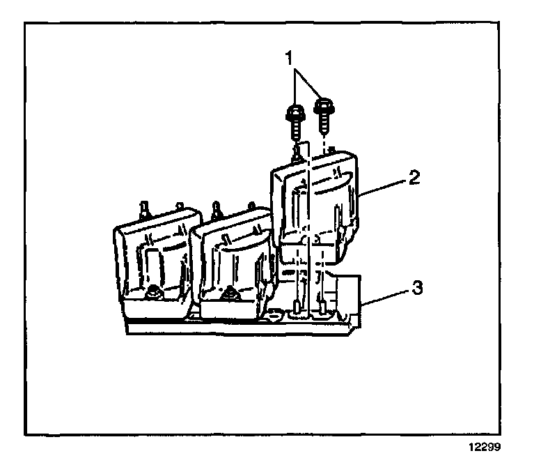 2. Remove the screws (1) securing the coil(s) to the ignition control module.