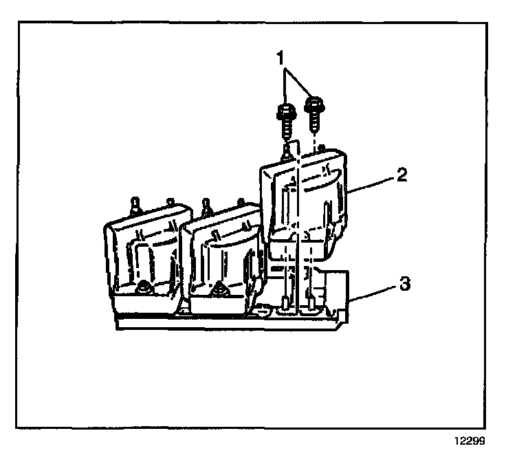5. Remove the coils (2) and the ICM (3) from the bracket.