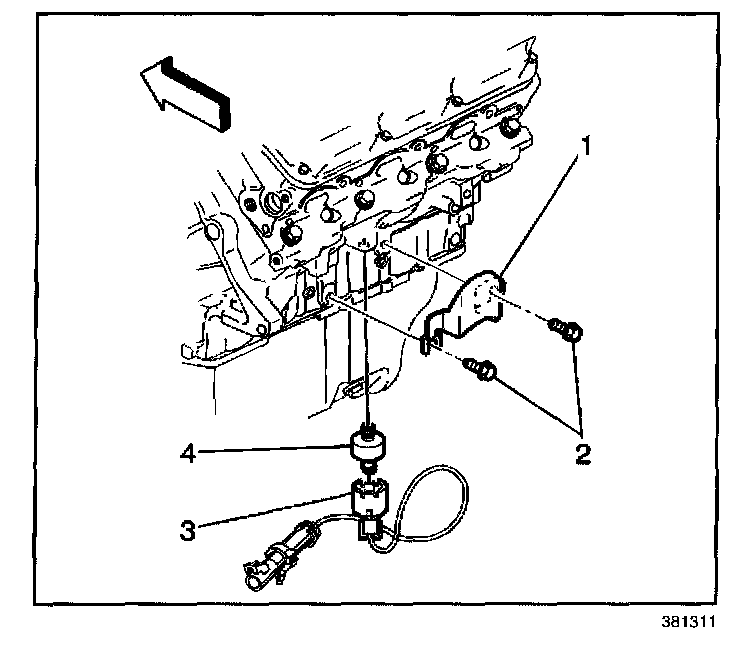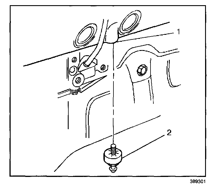 1. Install the knock sensor (2) into the engine block (1).