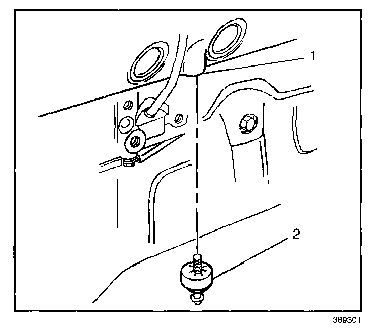 7. Remove the knock sensor (2) from the engine block (1).
