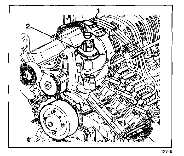 2. Position and install the MAP sensor (1) to the PCV valve cover (2). Ensure that the locking tabs engage to hold the MAP sensor to the PCV valve cover.