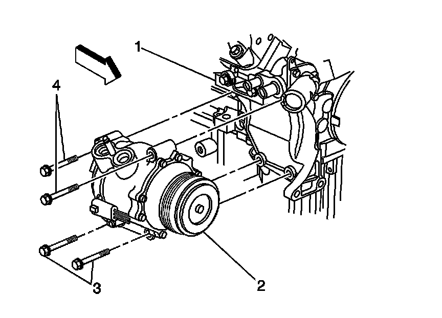 14. Remove the last A/C compressor mounting bolt with the compressor removed from the engine.