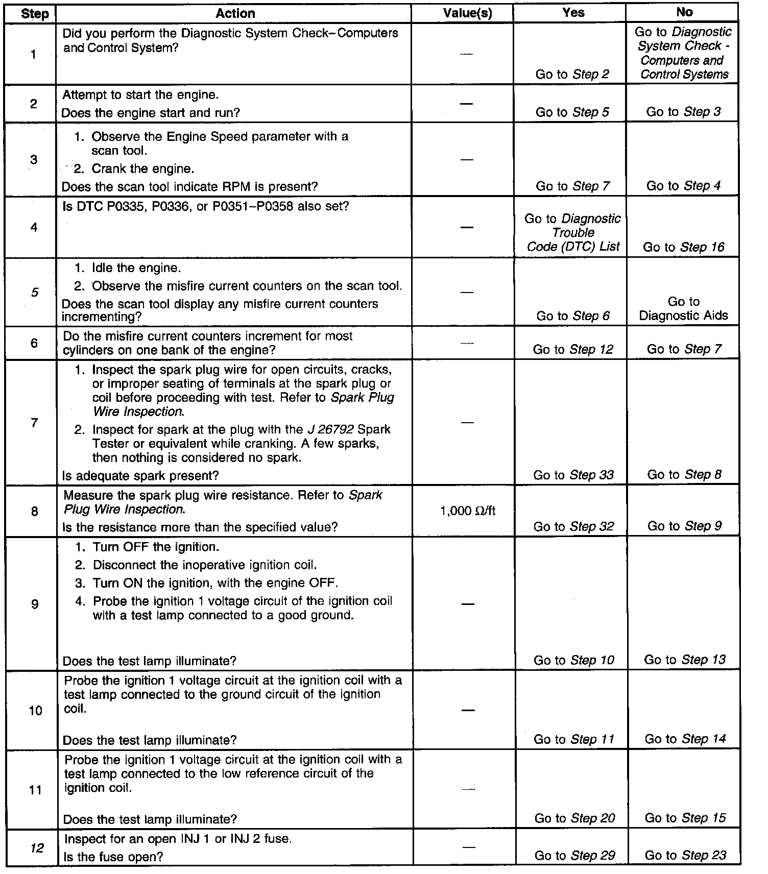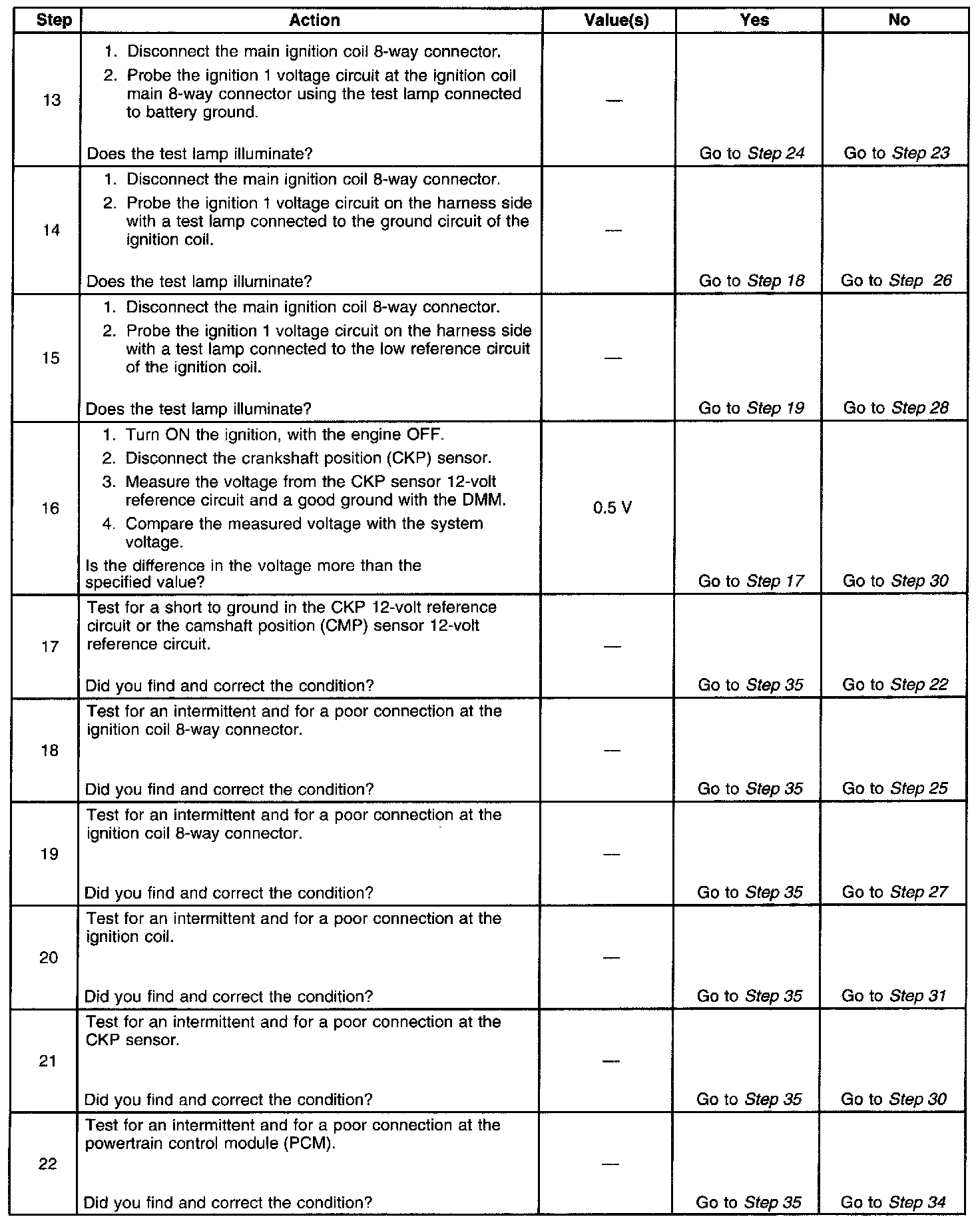 12. A good indication that the fuse is open is all off the misfire current counters are incrementing on one side of the engine. Inspect the ignition positive voltage circuit for a grounded circuit. If the fuse is open and the ignition coil circuits are OK, inspect the injector circuits for being grounded.