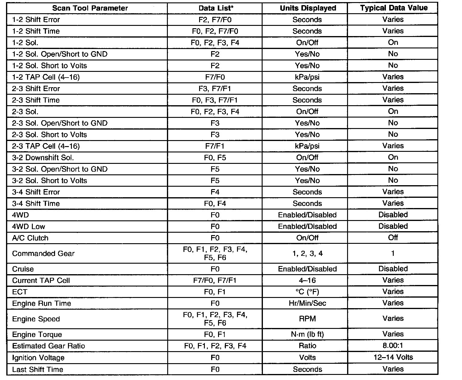 Transmission Scan Tool Data List (5.3L)Use the scan tool data list under the following conditions: