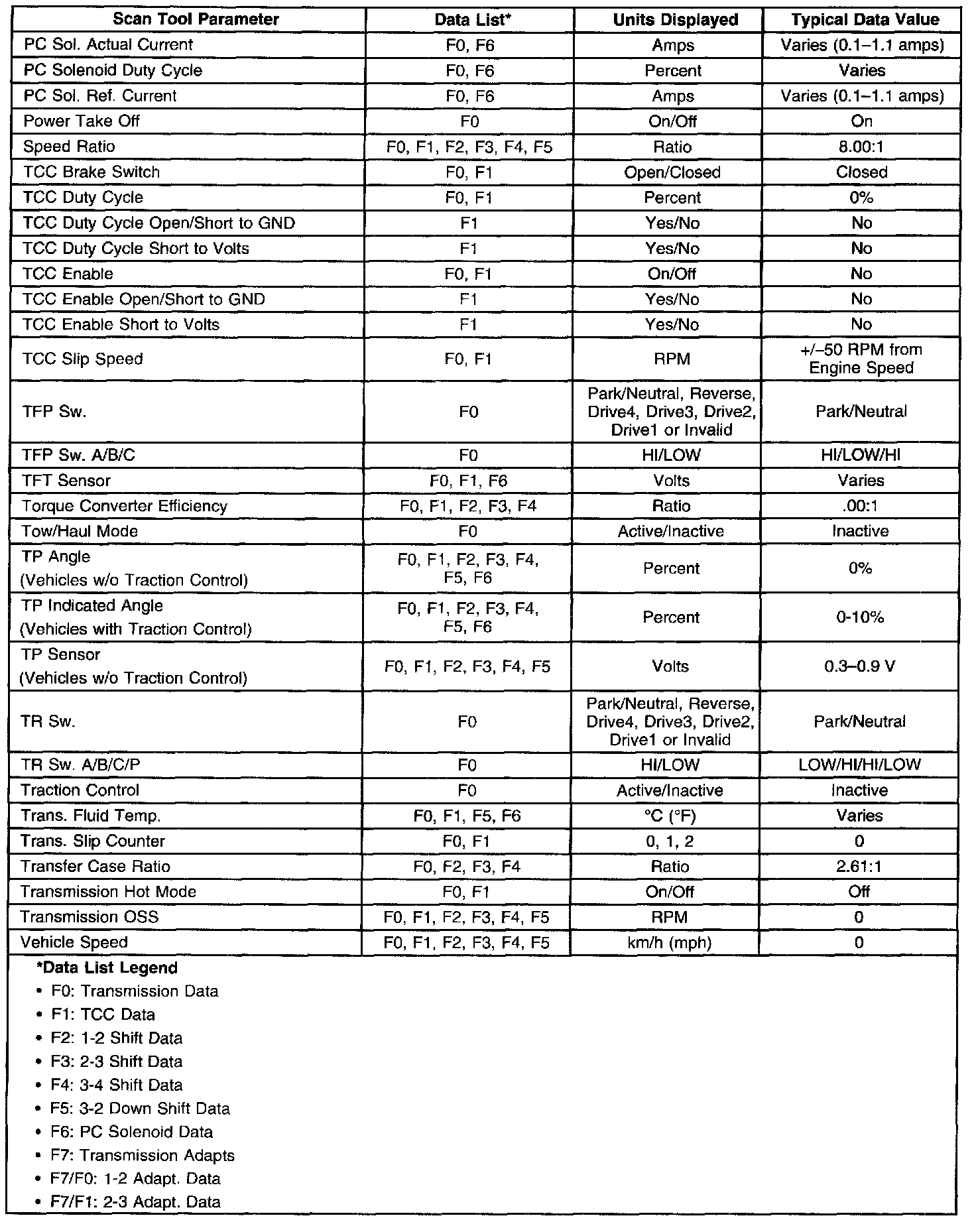 Scan Tool Data Values & Data List