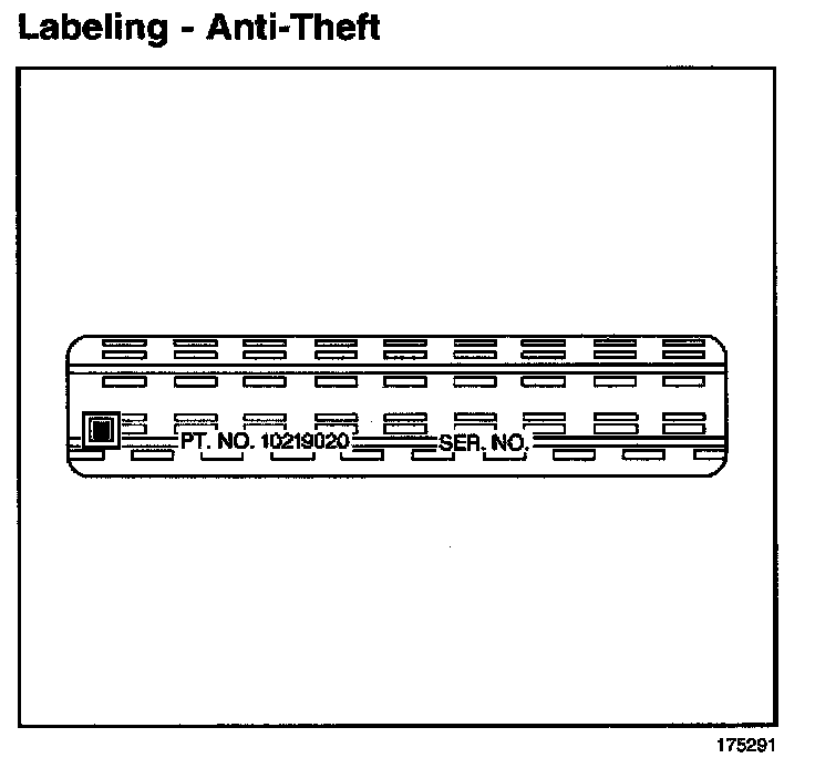 ANTI-THEFTNOTE: The anti-theft label found on some major body panels MUST be covered before performing any painting, rustproofing or undercoating procedures. The mask must also be removed following those procedures. Failure to follow these precautionary steps may result in liability for violation of the Federal Vehicle Theft Prevention Standard, and subject the vehicle owner to possible suspicion that the part was stolen.