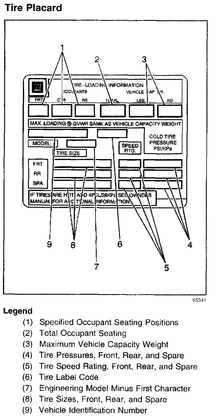 The tire placard is located on the inside of the rear compartment lid (2). Refer to the tire placard to obtain the following information: