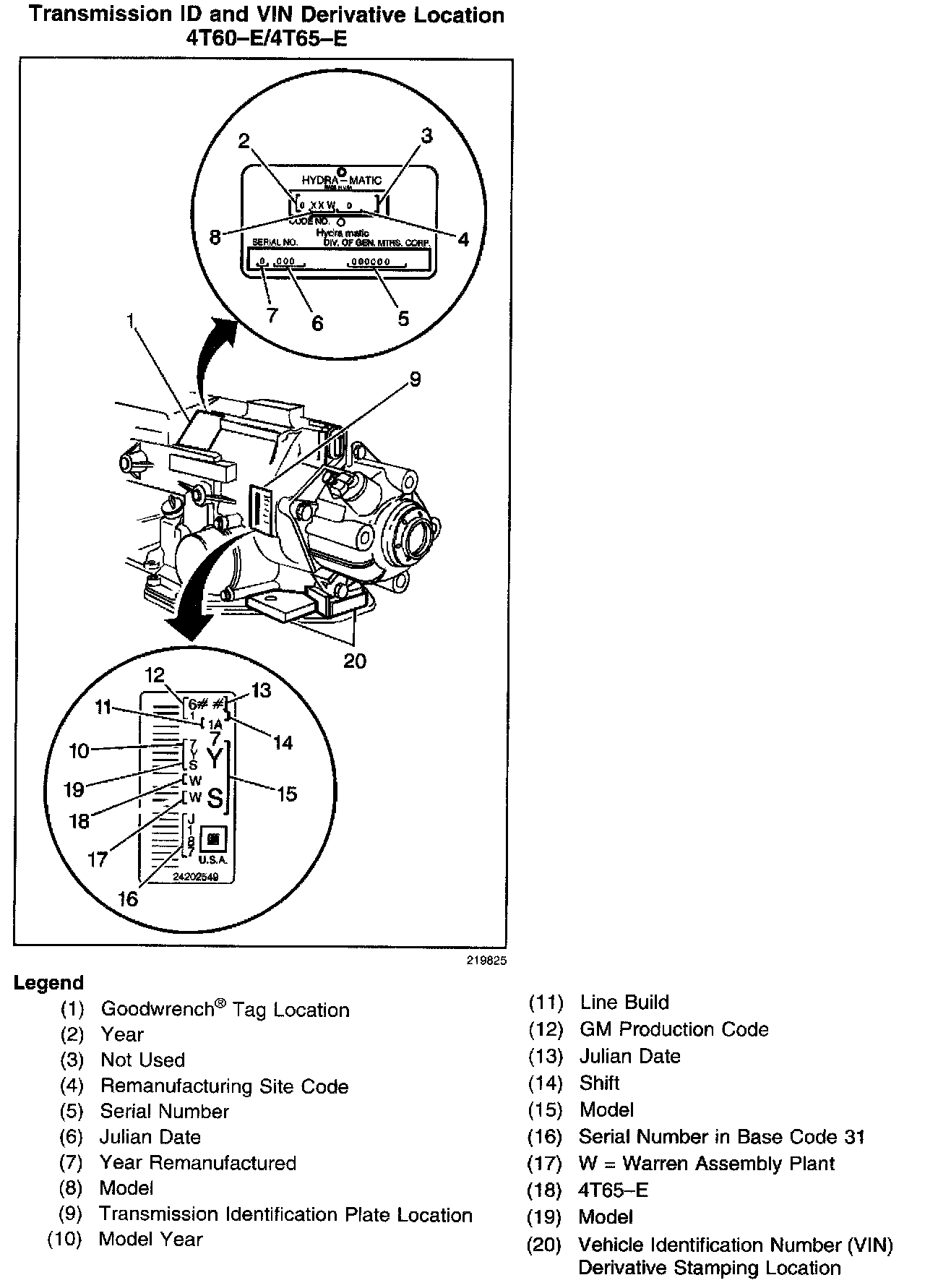 TRANSMISSION ID AND VIN DERIVATIVE LOCATIONTransmission ID And VIN Derivative Location: