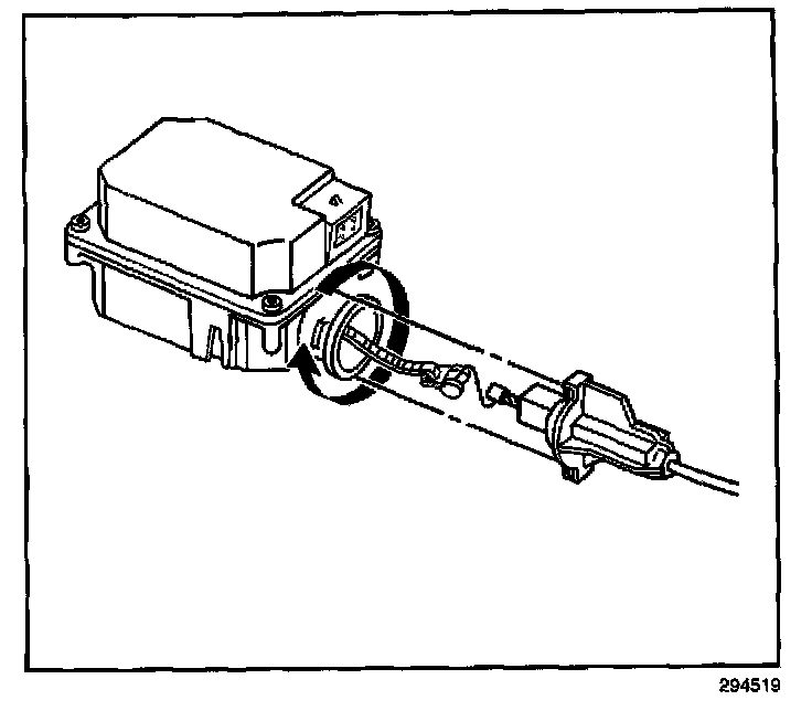 2. Rotate the cruise control cable counterclockwise. Remove the cruise control cable from the cruise control module.