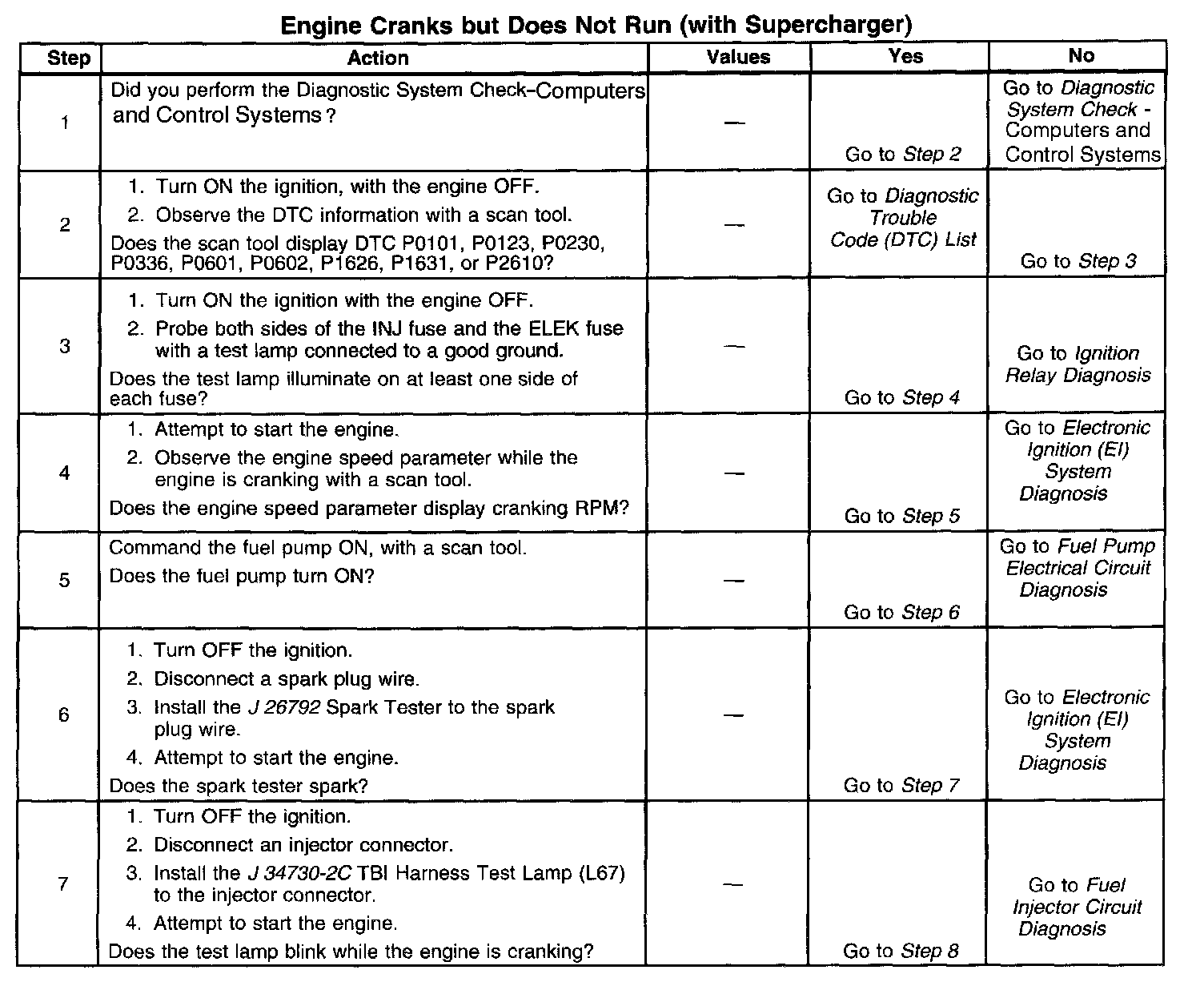 The Engine Cranks But Does Not Run diagnostic table is an organized approach to identifying a condition that causes an engine not to start. The Engine Cranks But Does Not Run diagnostic table directs the service technician to the appropriate system diagnosis.