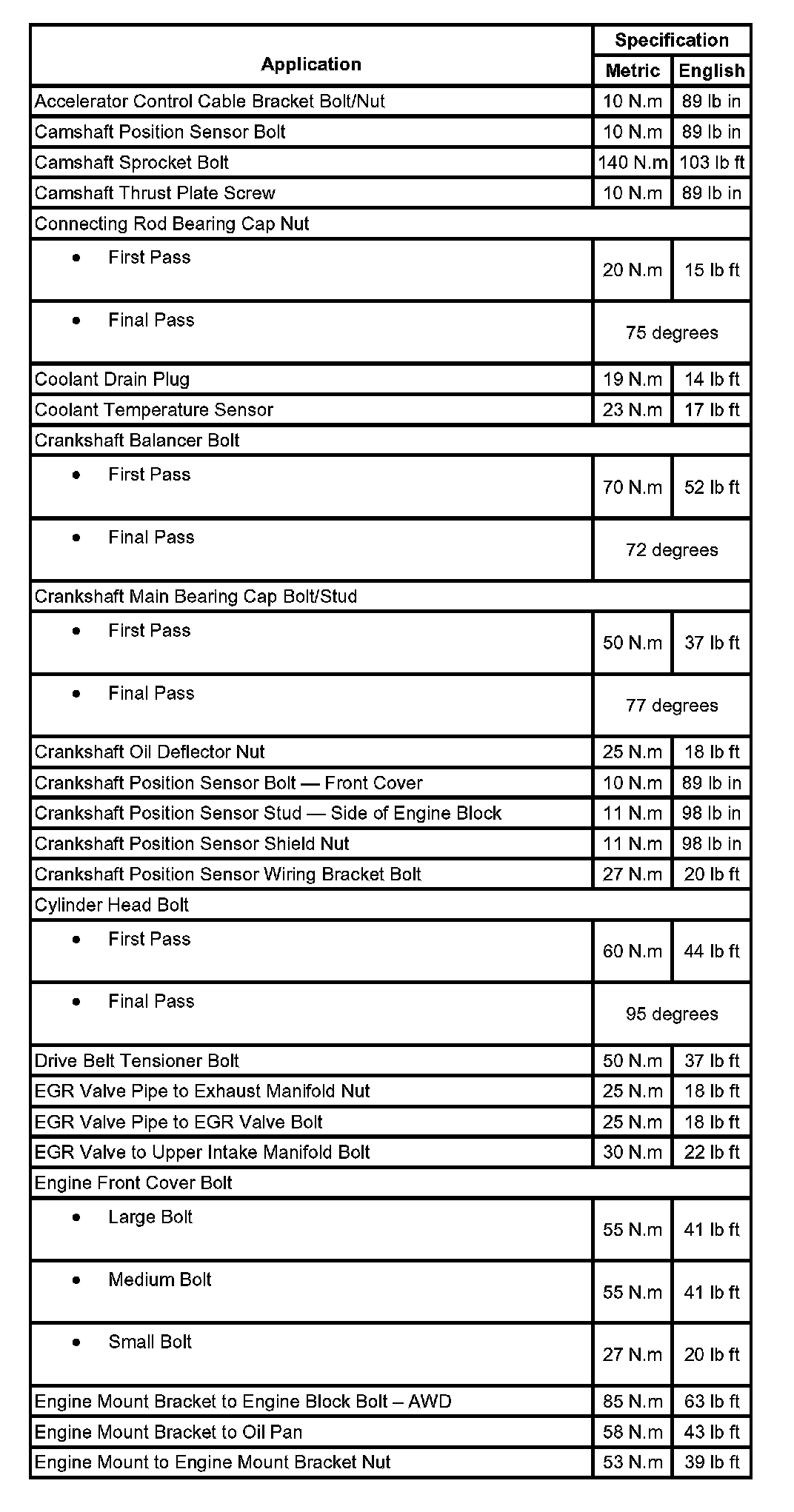 Torque Specifications