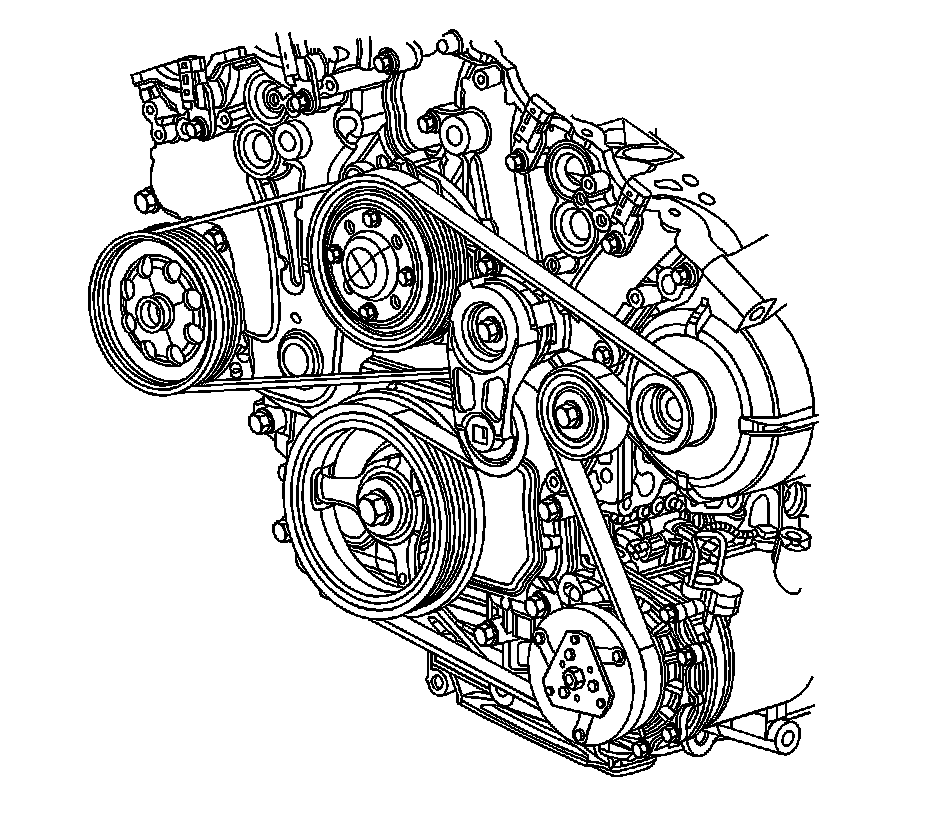 Important: Ensure the drive belt is properly aligned and seated into the grooves of the accessory drive pulleys.