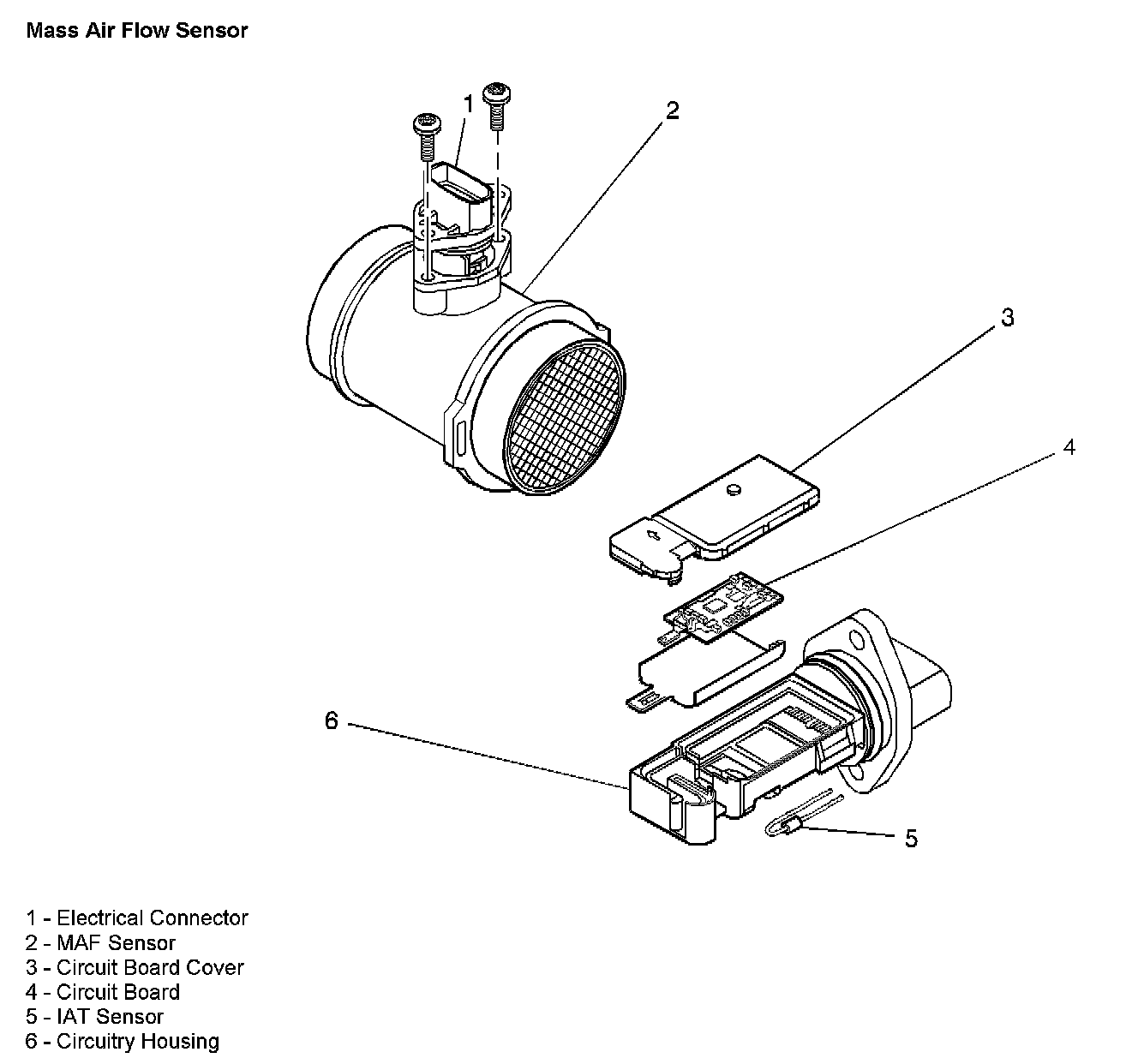 The MAF sensor measures the amount of air coming into the engine. This direct airflow measurement is more accurate than the calculated airflow information obtained from the other sensor inputs. The MAF sensor also houses an integrated intake air temperature (IAT) sensor. The MAF sensor uses the following circuits: