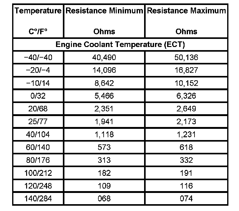 Temperature Vs Resistance - Engine Coolant Temperature (ECT) Sensor:
