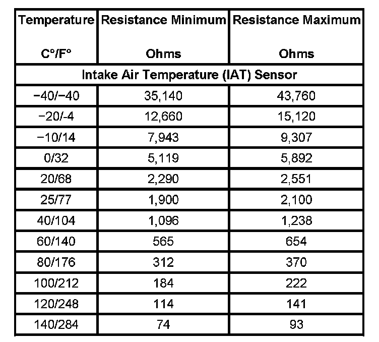 Temperature Vs Resistance - Intake Air Temperature (IAT) Sensor: