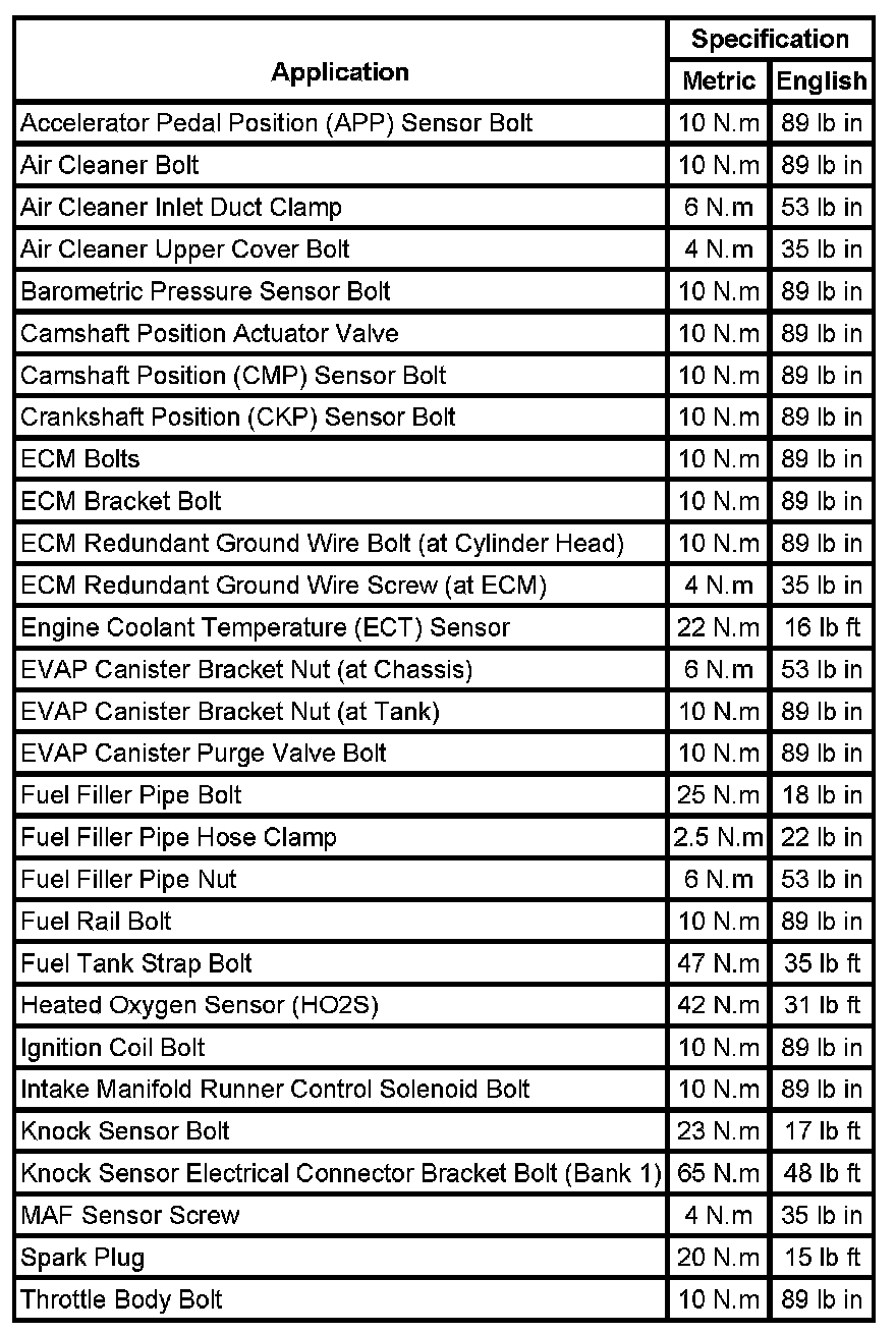 Fastener Tightening Specifications: