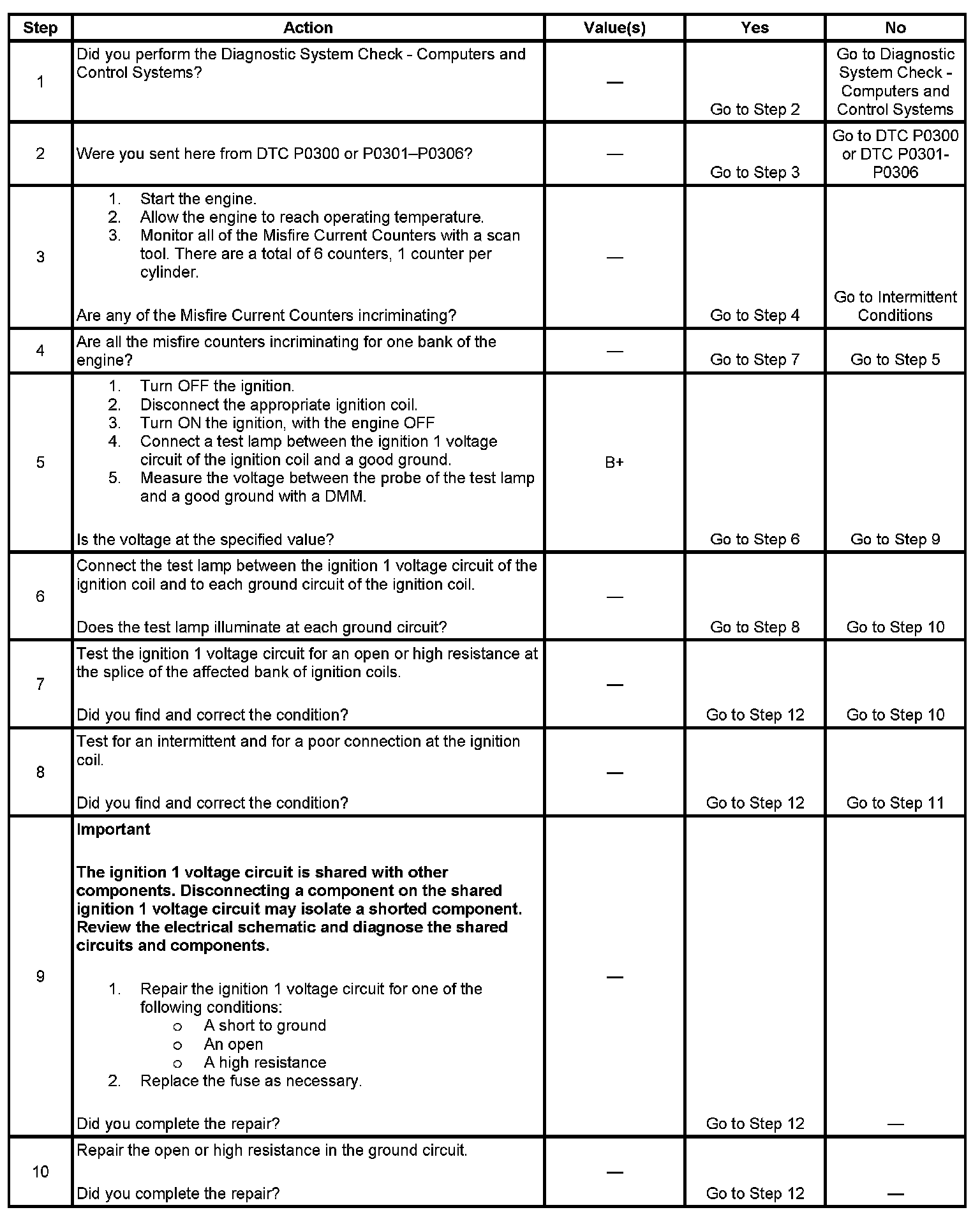 6. This step determines if the ground circuit is open. If the circuit is open, the ignition coils would be inoperative for one bank of the engine.