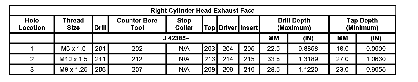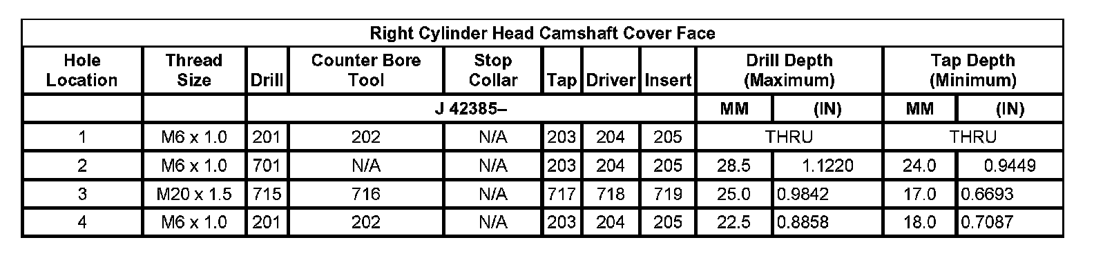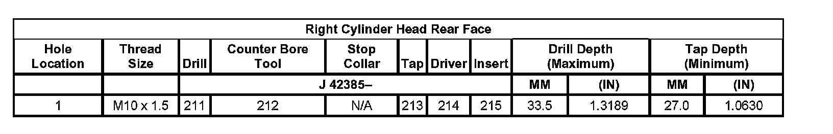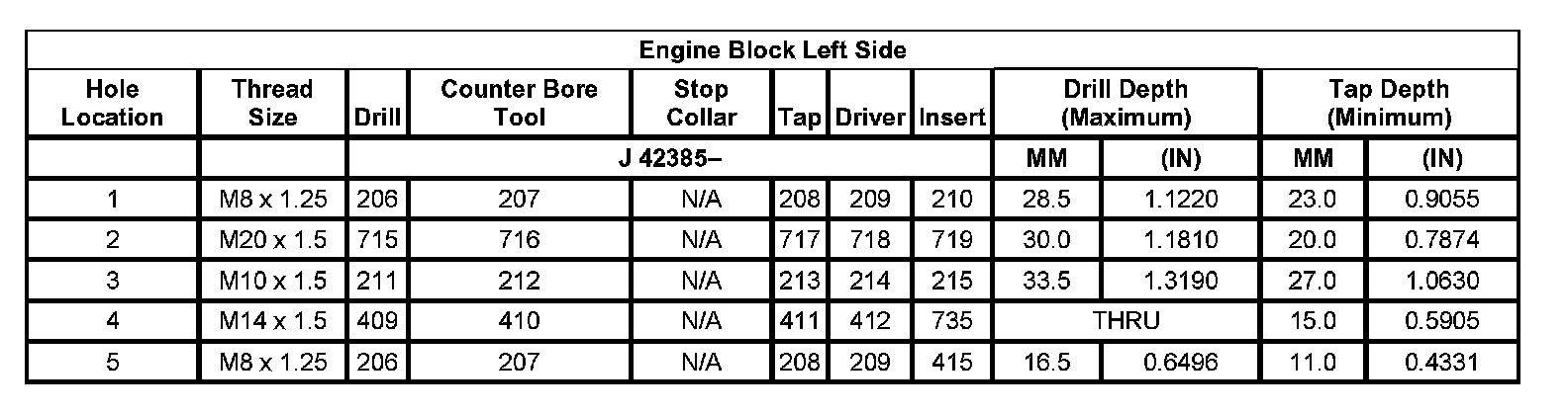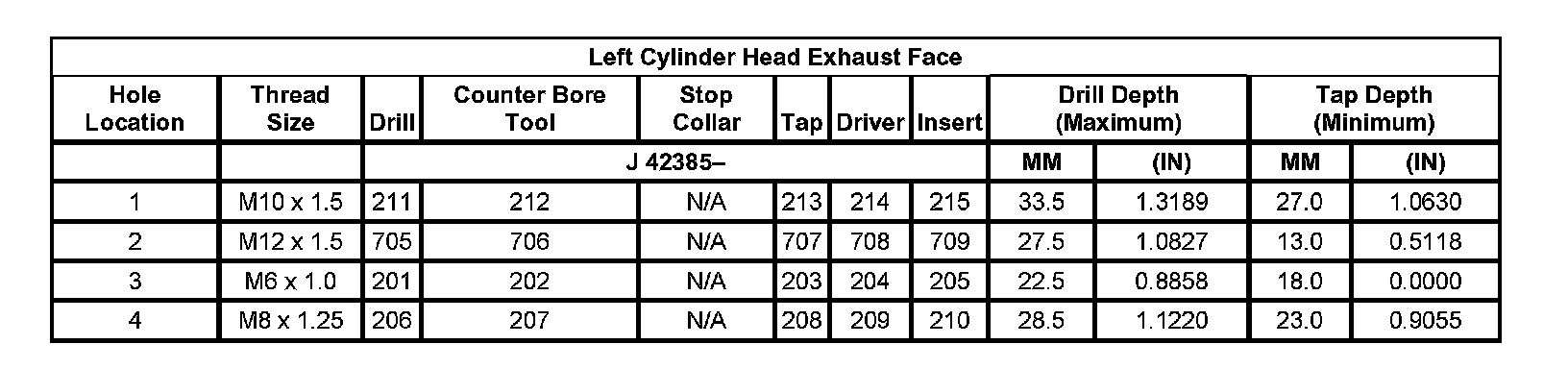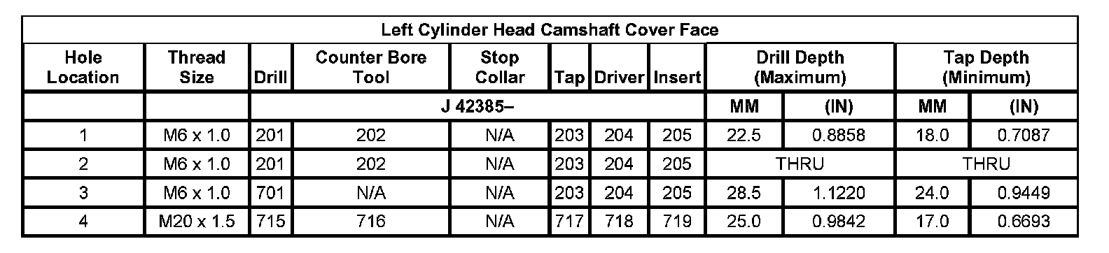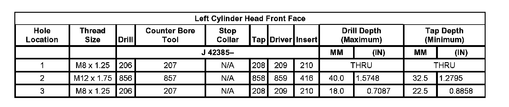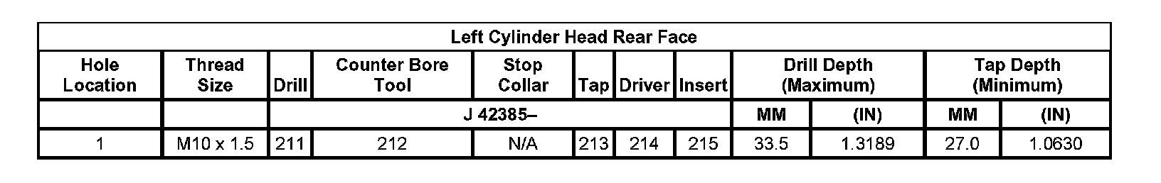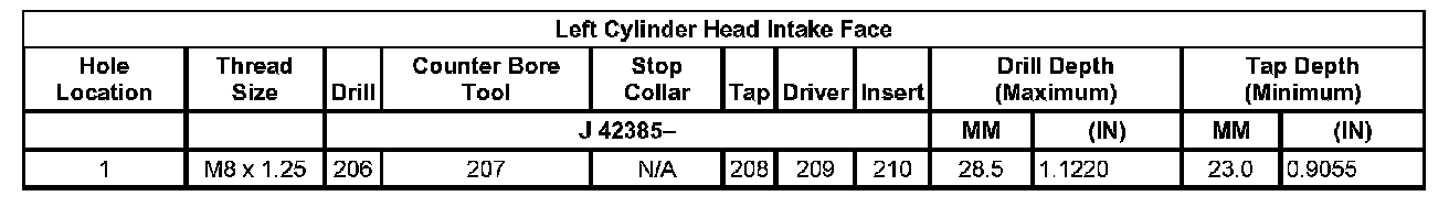 Thread Repair SpecificationsLeft Cylinder Head Camshaft Cover Face