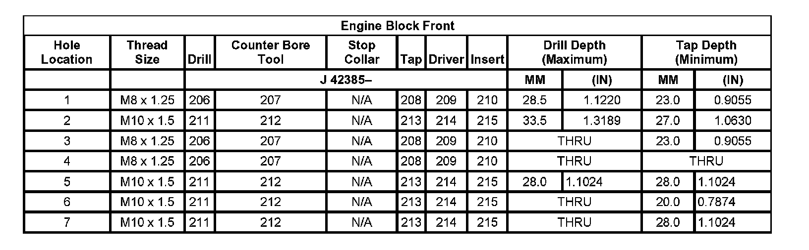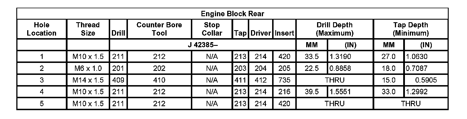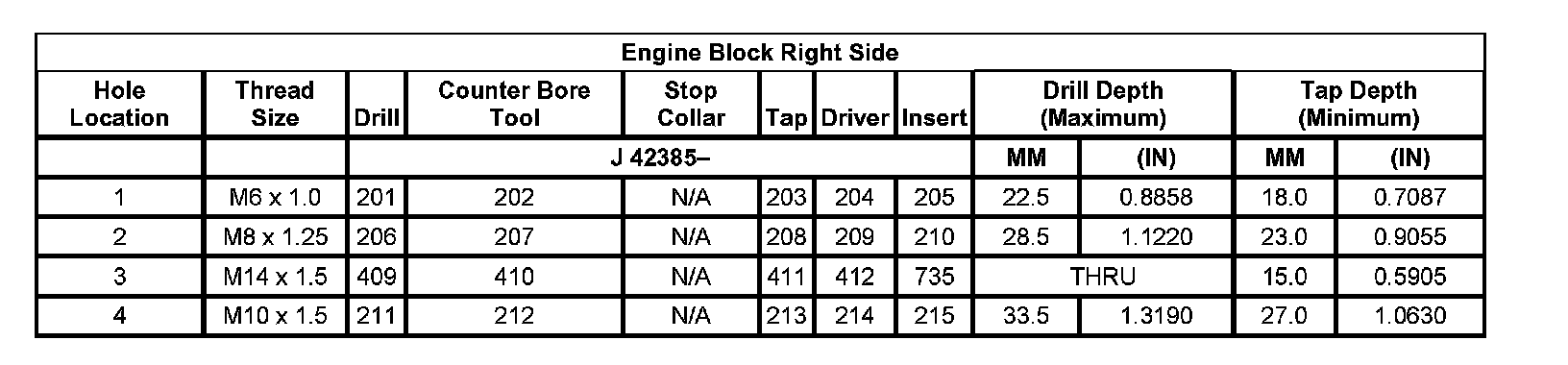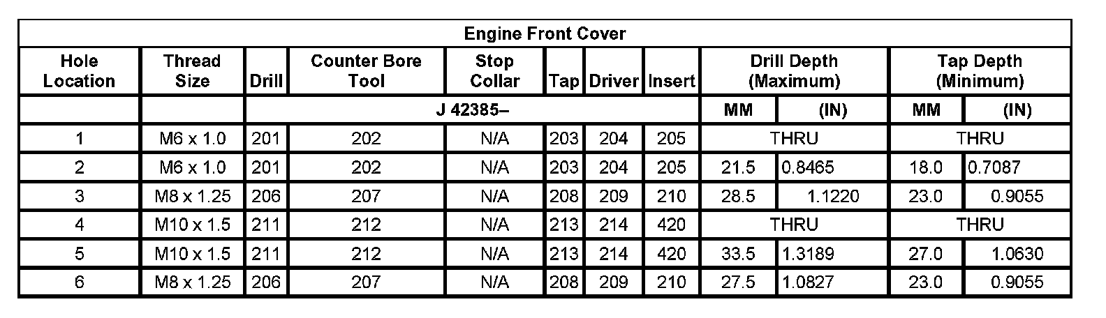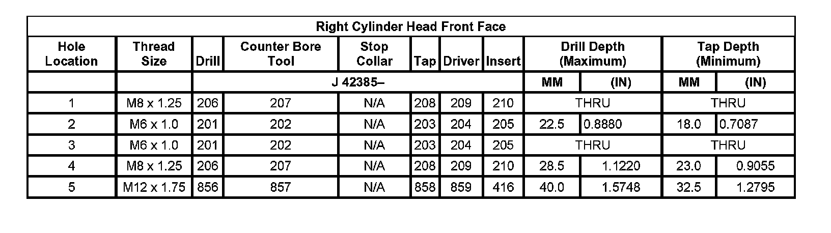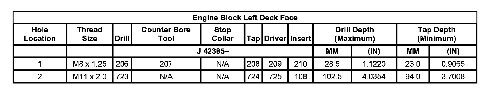 Thread Repair SpecificationsLeft Cylinder Head Camshaft Cover Face