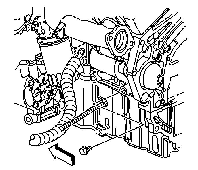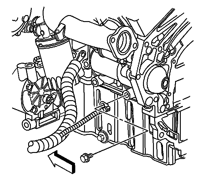 7. Remove the battery ground (negative) cable bolt and cable from the engine block.