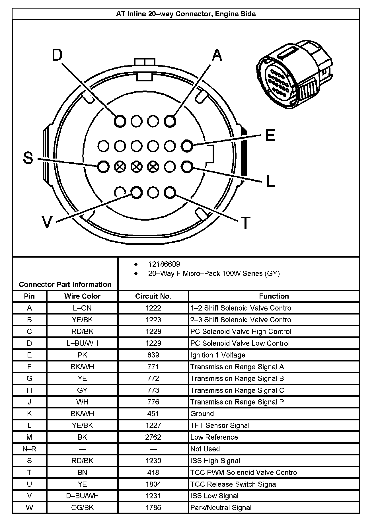 AT Inline 20way Connector, Transmission Side