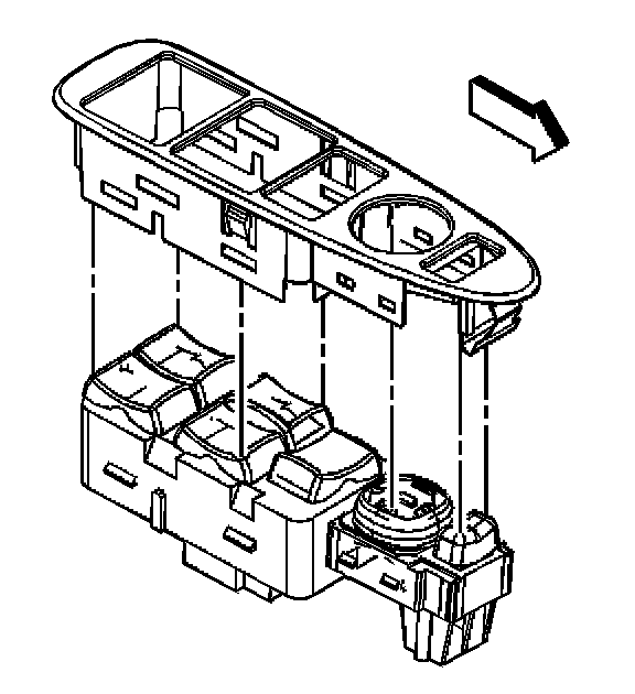 1. Use a small flat-bladed tool at the front of the power window switch in order to remove the switch plate from the front door trim panel