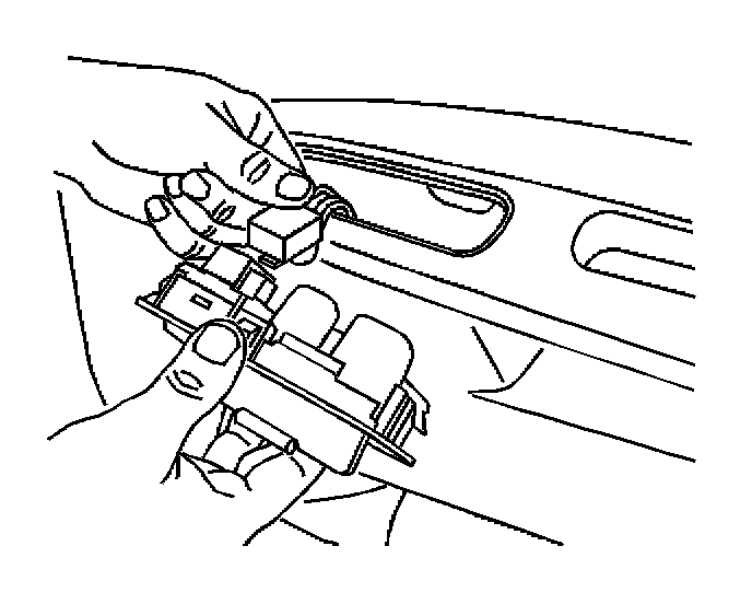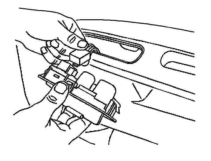 1. Use a small flat-bladed tool to remove the mounting plate for the power window switch. Insert the tool at the rear of the mounting plate and release the retainer.