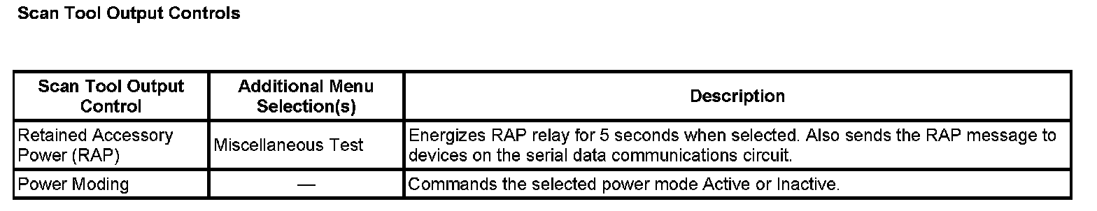 Scan Tool Output Controls: