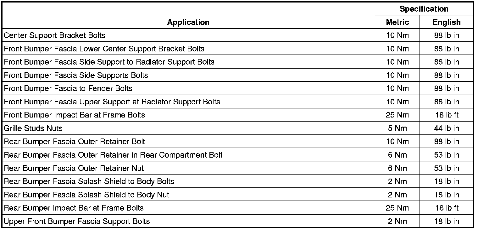 Bumper: Specifications